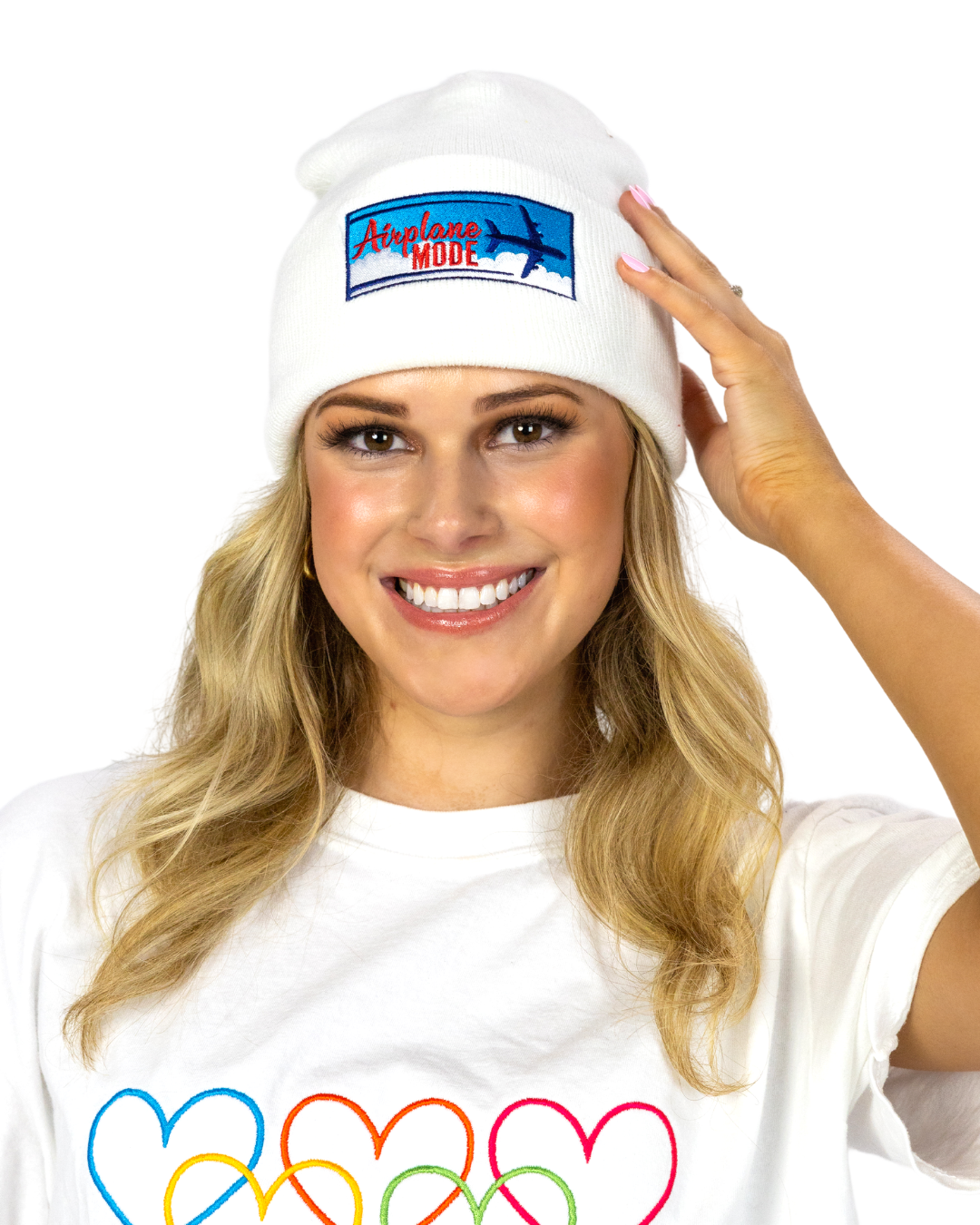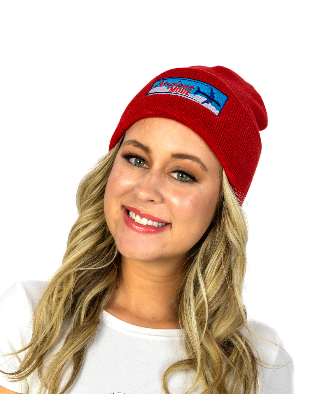 Made of 100% turbo acrylic fabric, this knit hat is snug and form-fitting. 12" in length, hypoallergenic, and hand-washable. Available in red and white, featuring vintage aviation inspired embroidery. Planes can get chilly - stay cozy on your next flight!
