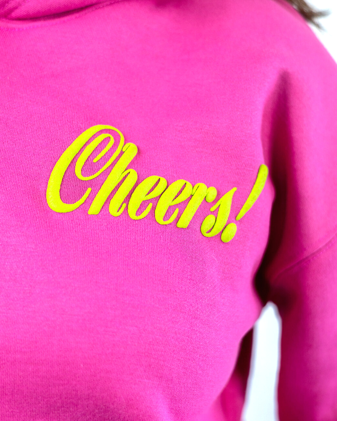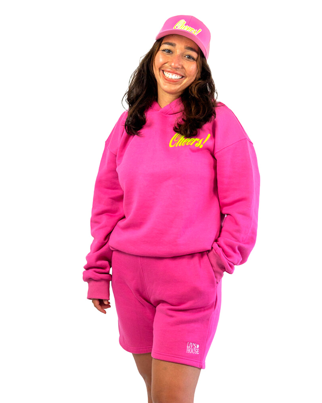 Make it a set! This hoodie pairs with the Cheers Trucker, and looks awesome with the Logo Sweatpants in Pink or White, or the Logo Sweatshorts in Pink or White. Let your personal style shine!