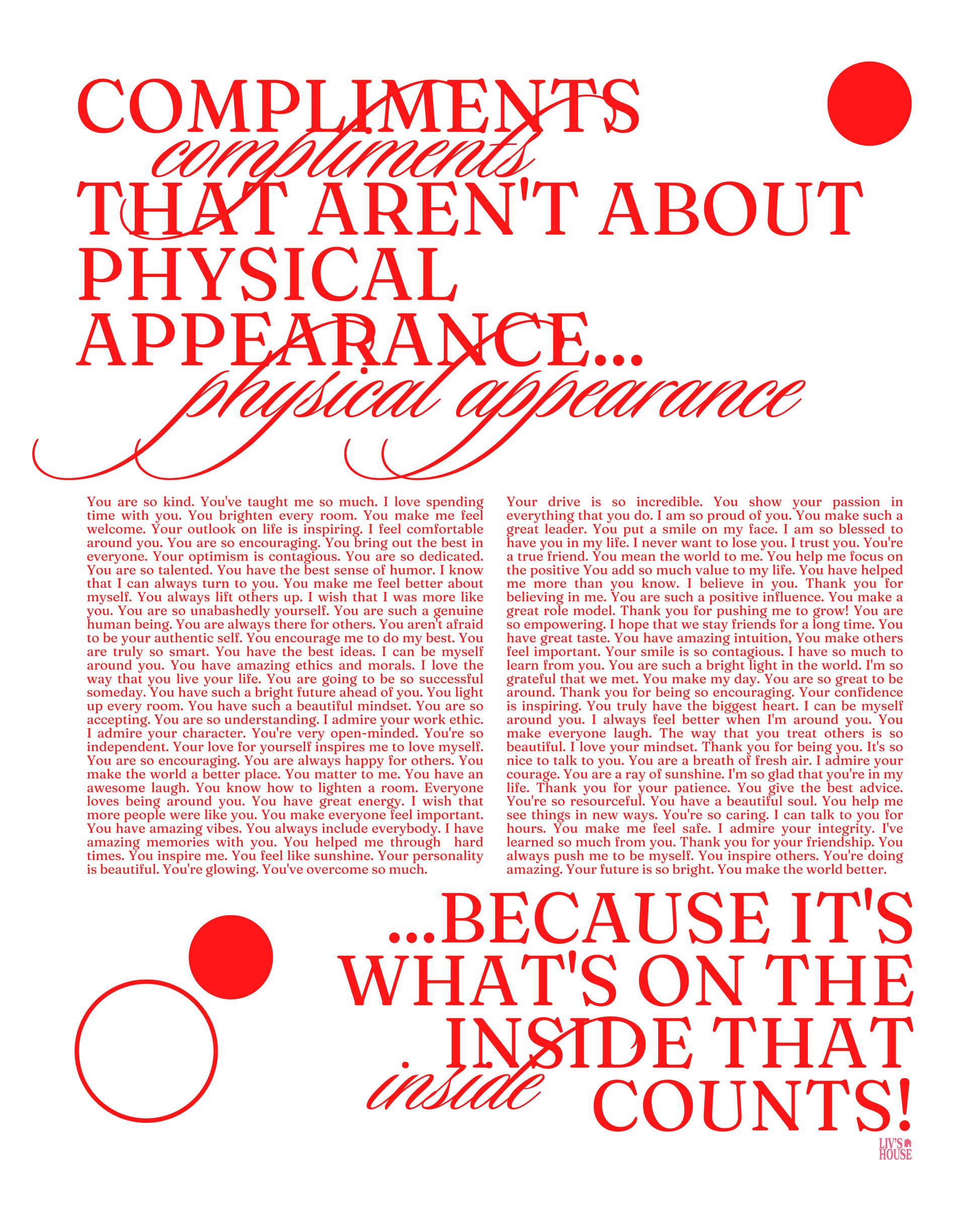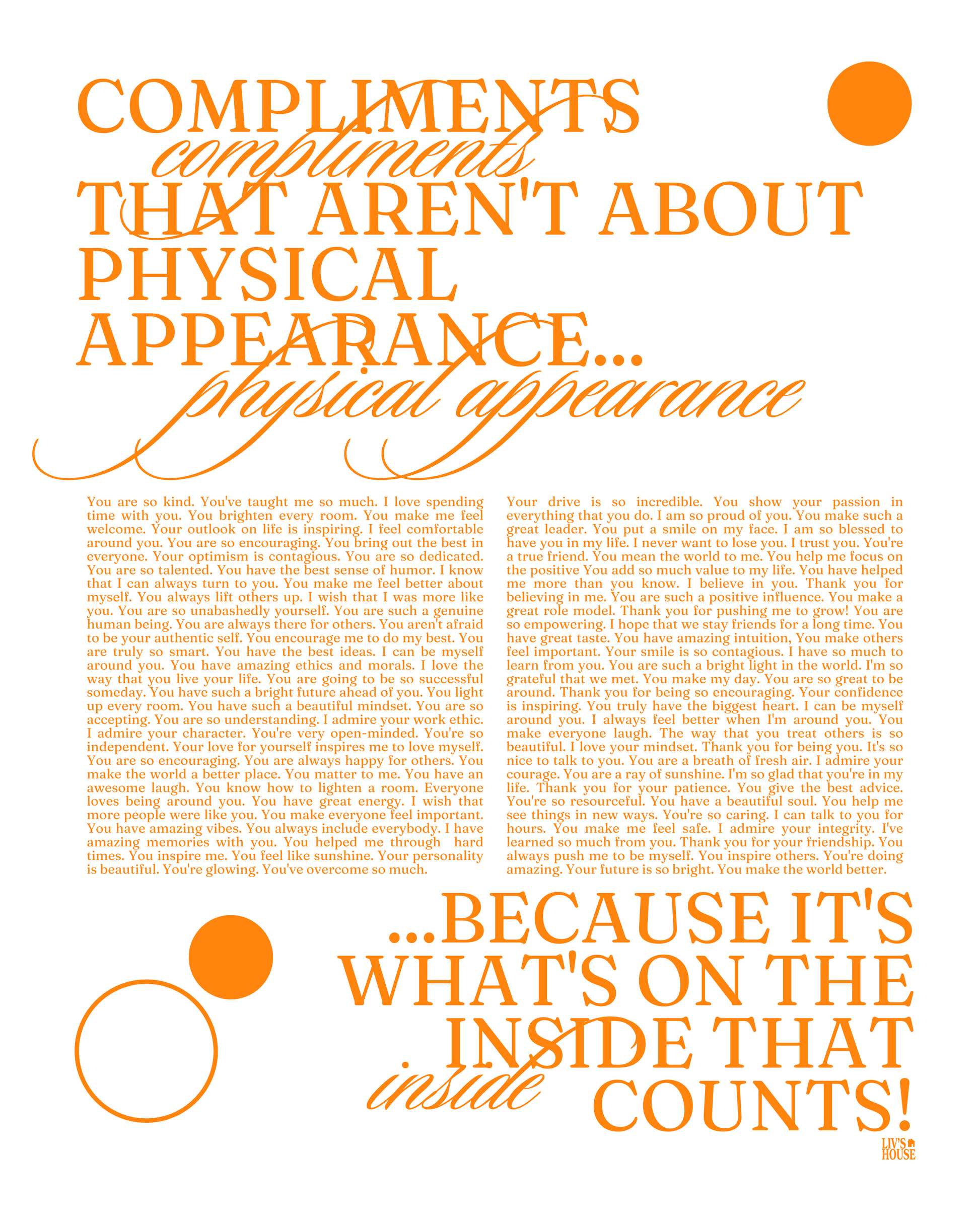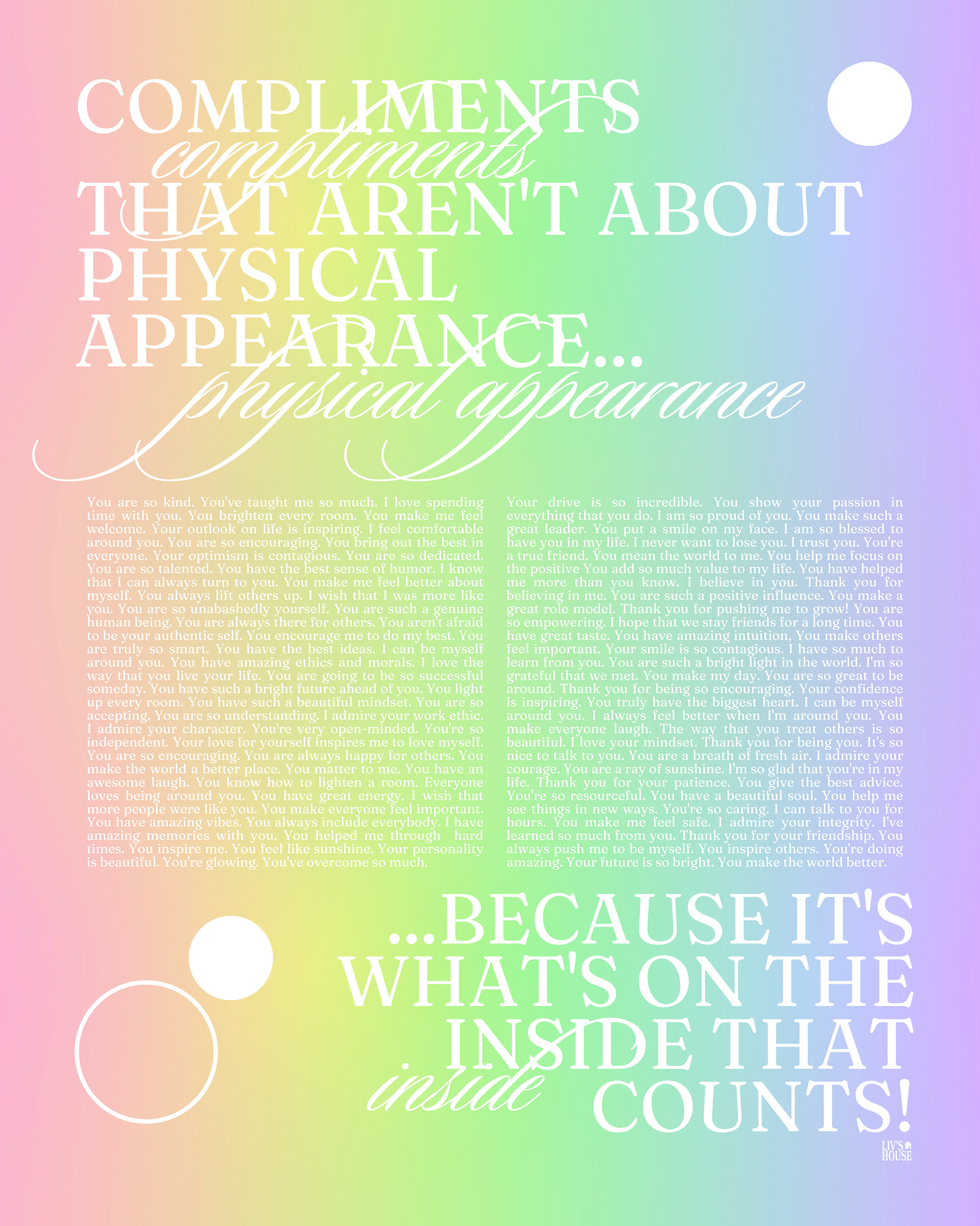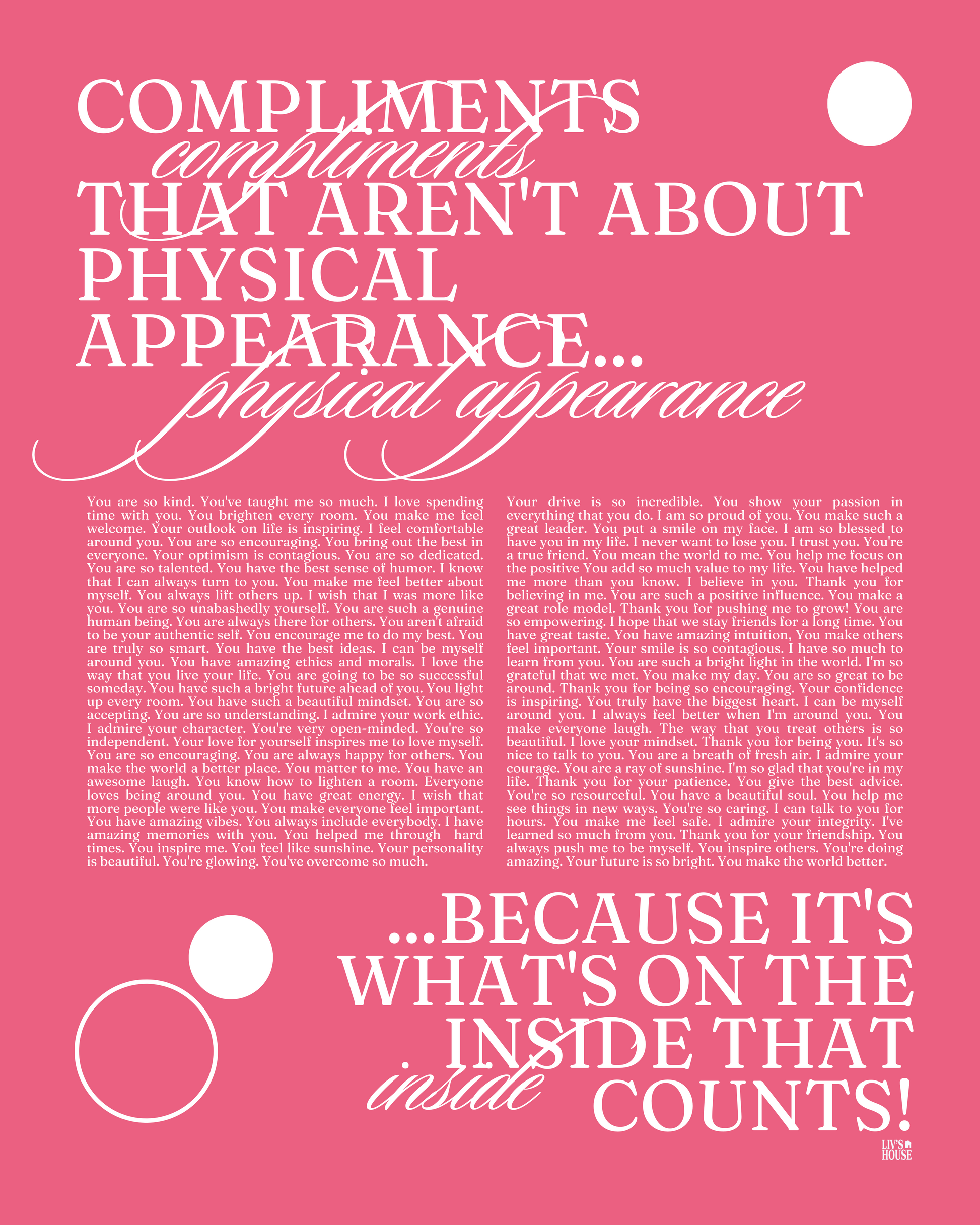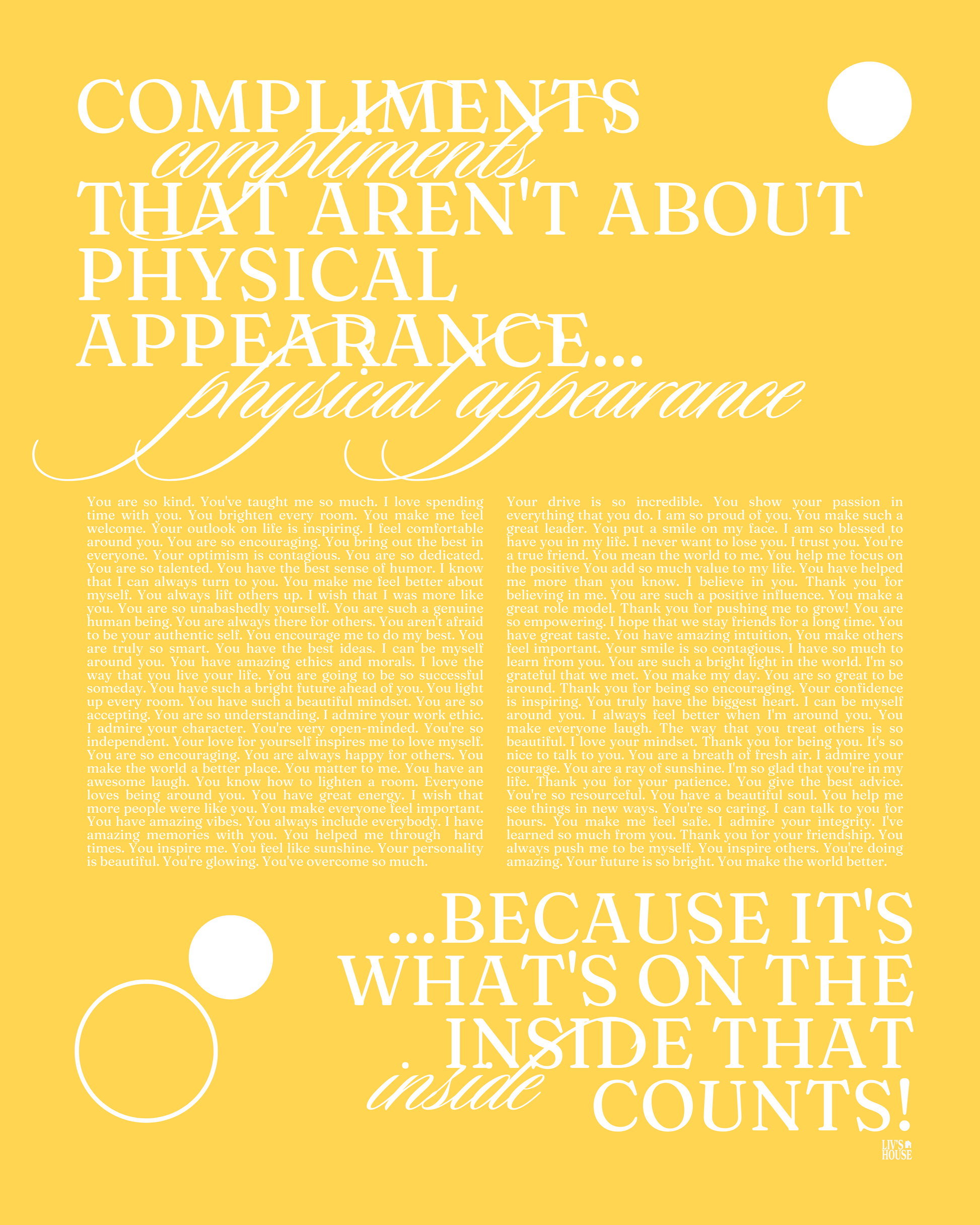 Compliments that aren't about physical appearance... because it's what's on the inside that counts!