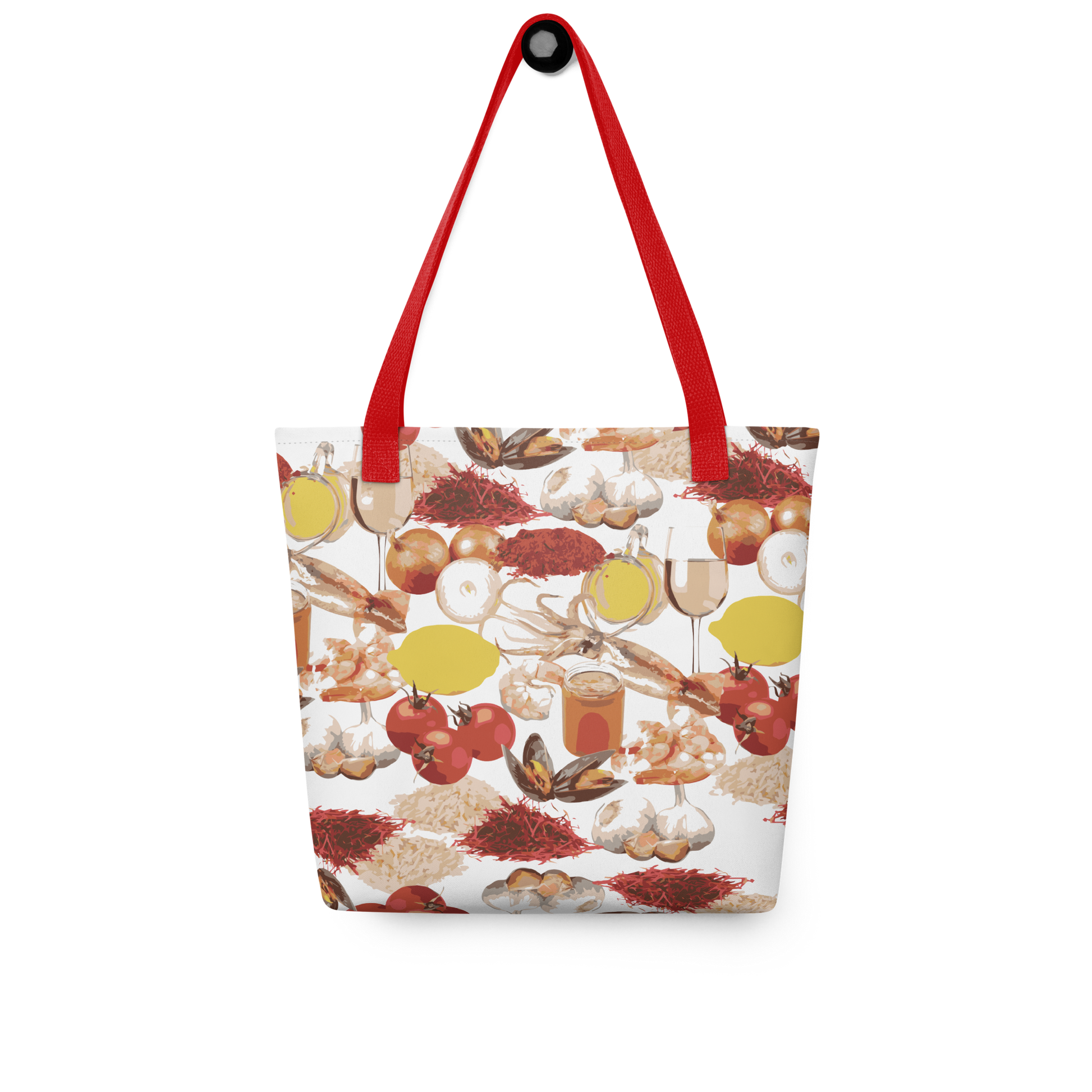 Whether you're walking to class, out on the town with friends, grocery shopping, or heading to work, this paella-printed bag is perfect for toting along everything that you need for your best day ever.