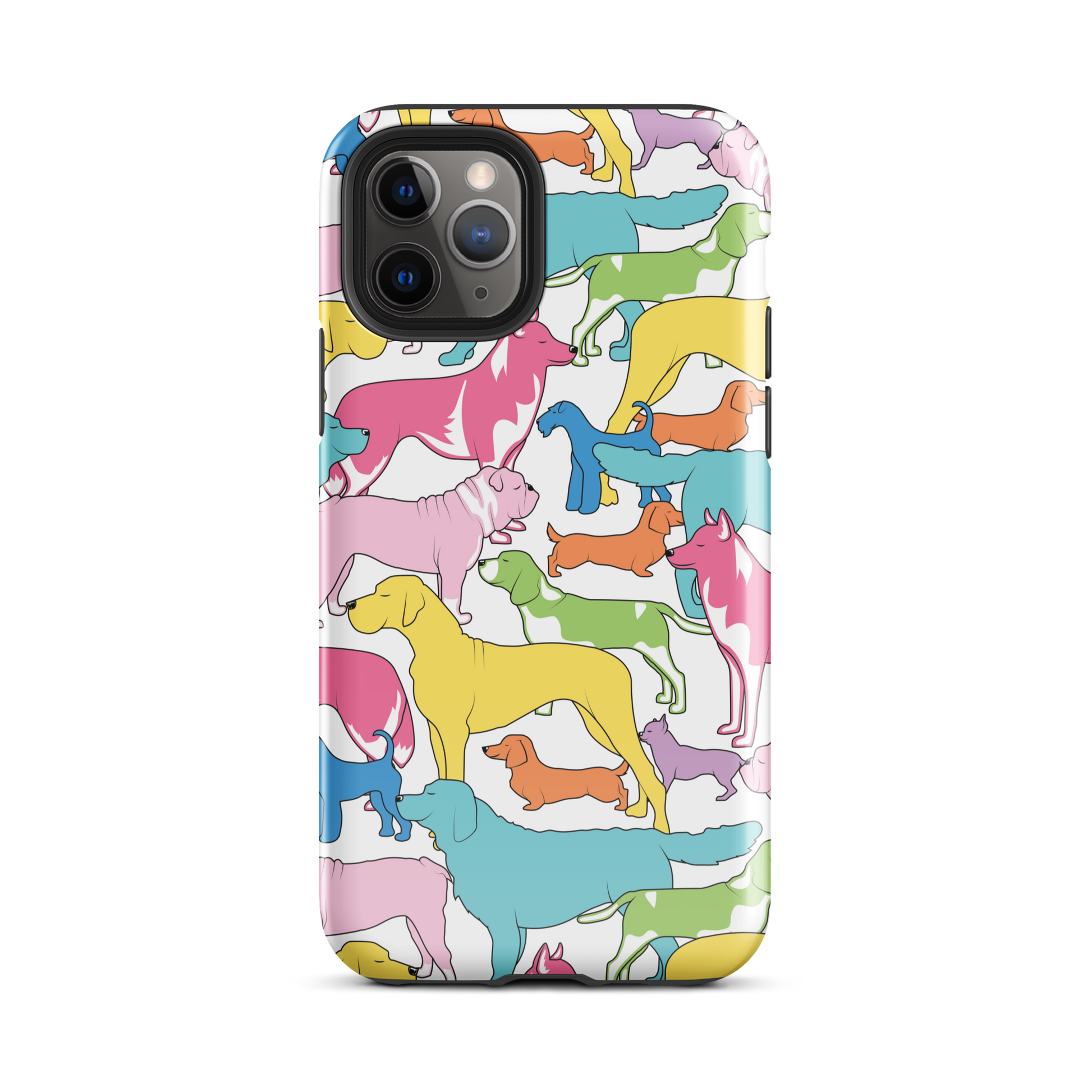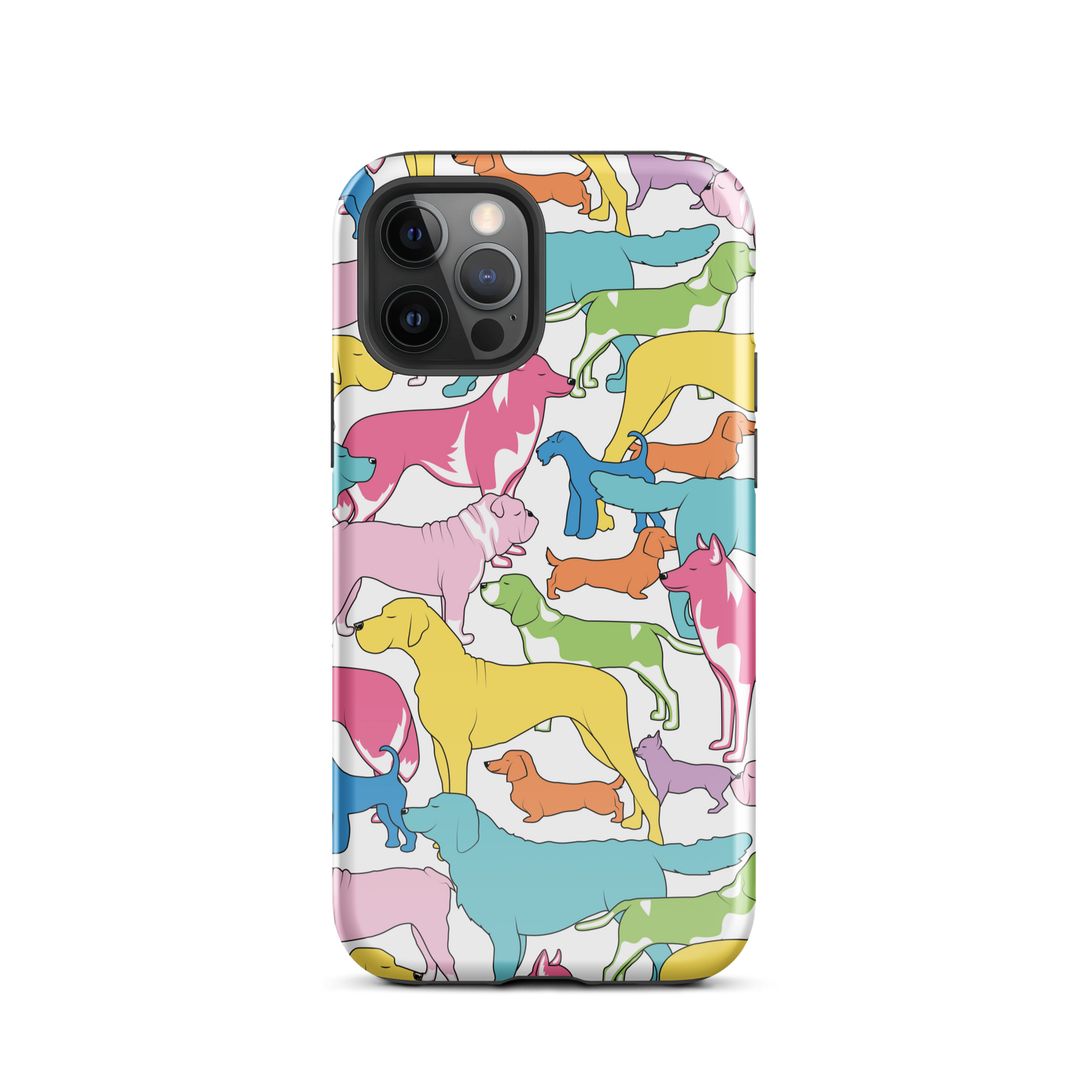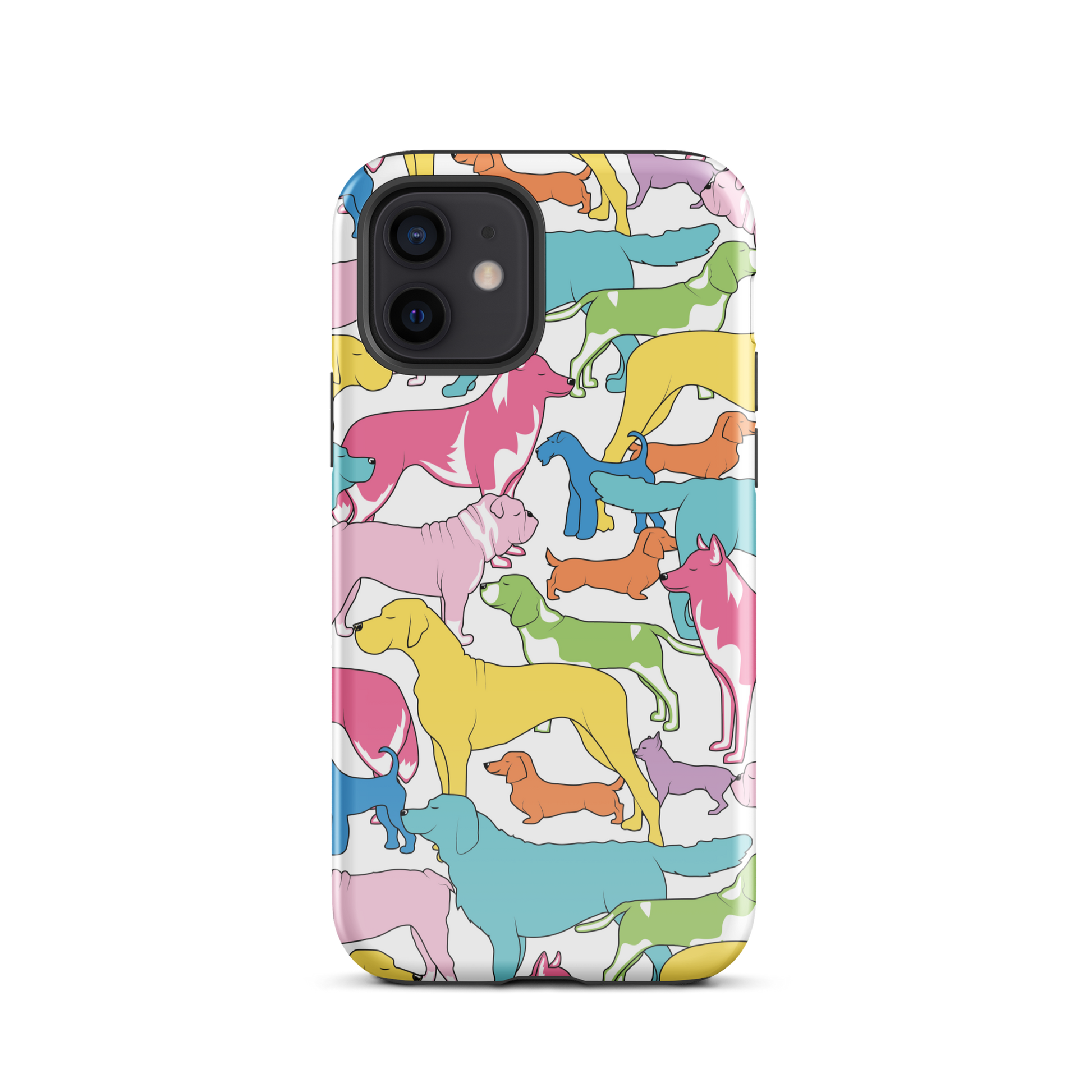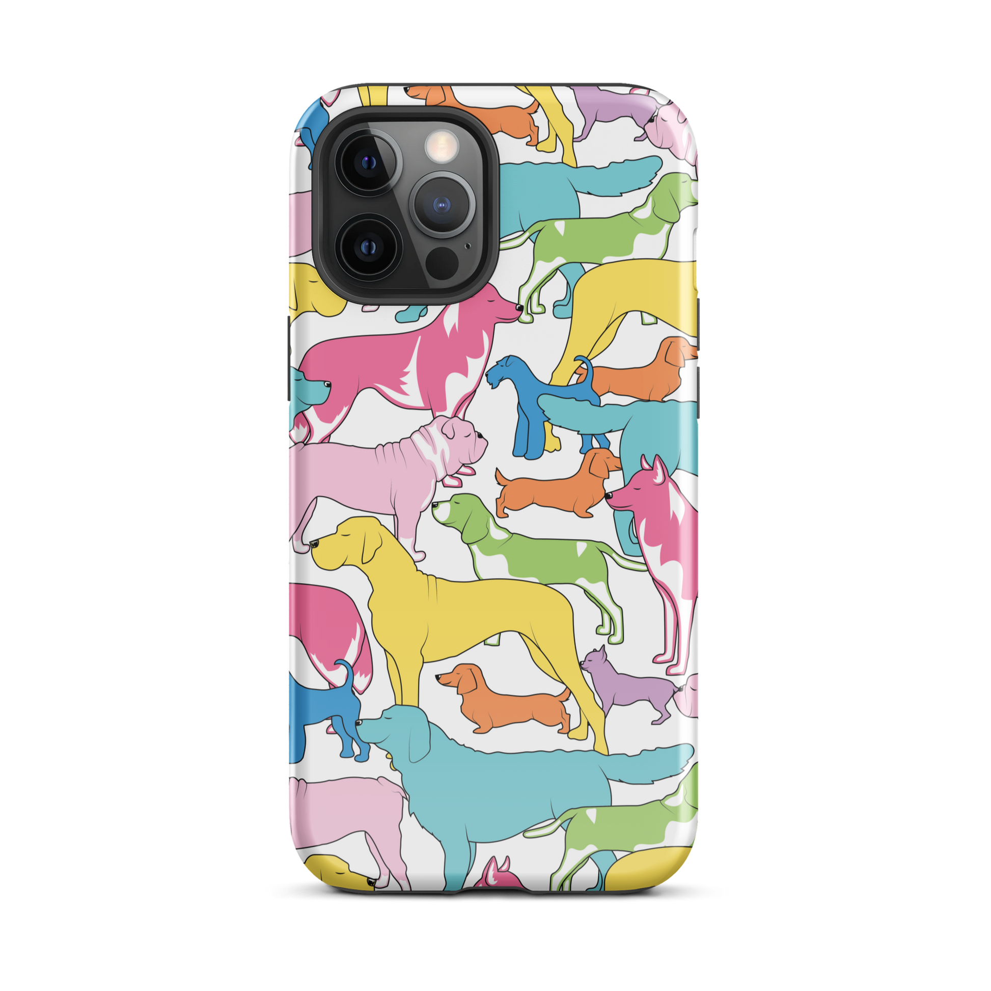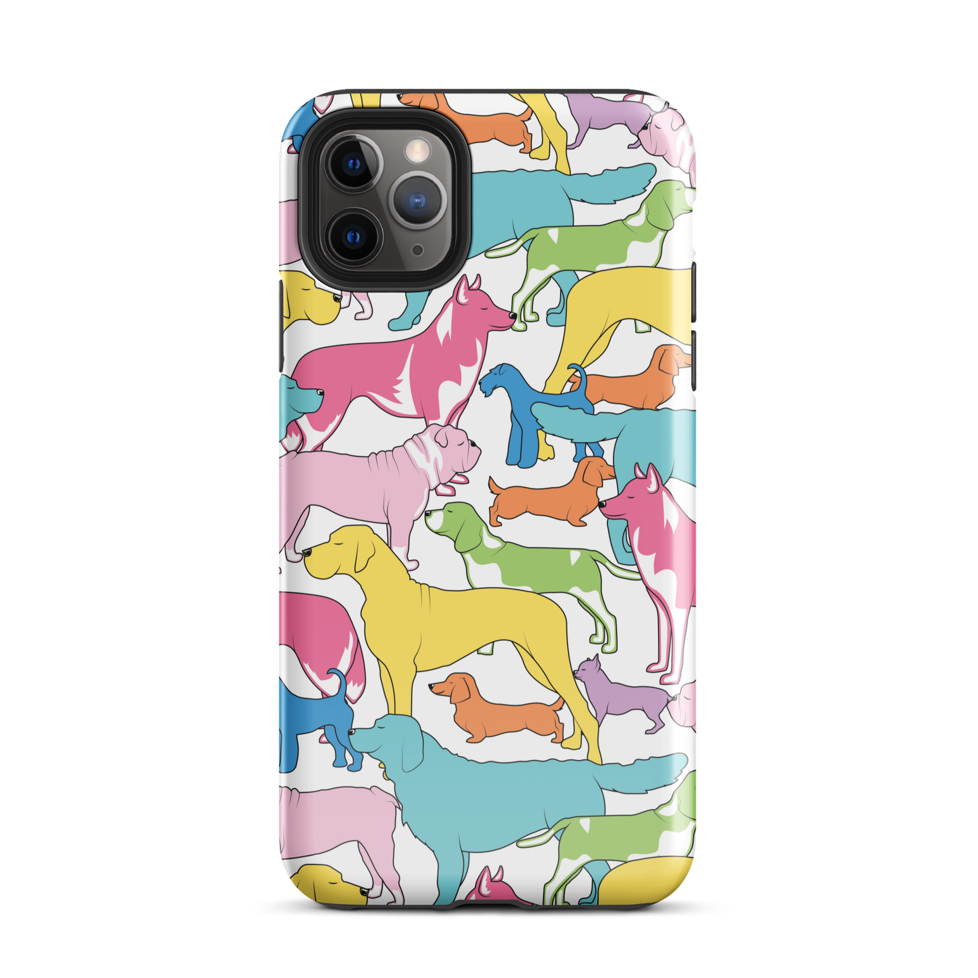 Design features a rainbow of dogs in a variety of breeds, including Great Danes, huskies, golden retrievers, Dachshunds, beagles, chihuahuas, terriers, and bulldogs. Perfect for dog lovers and pet parents!
