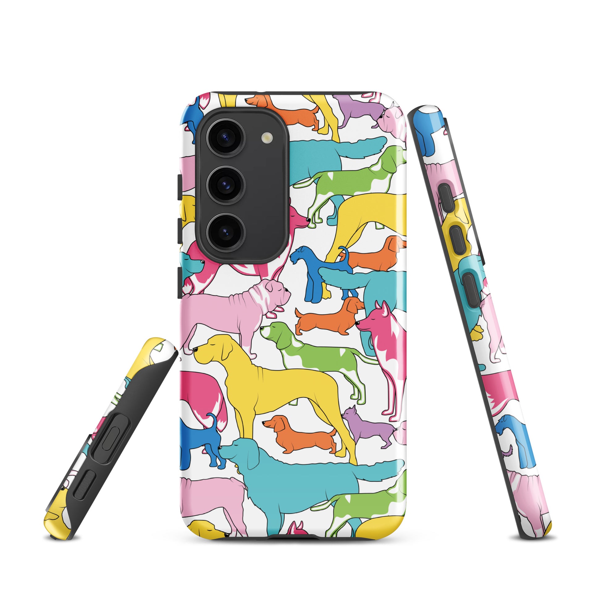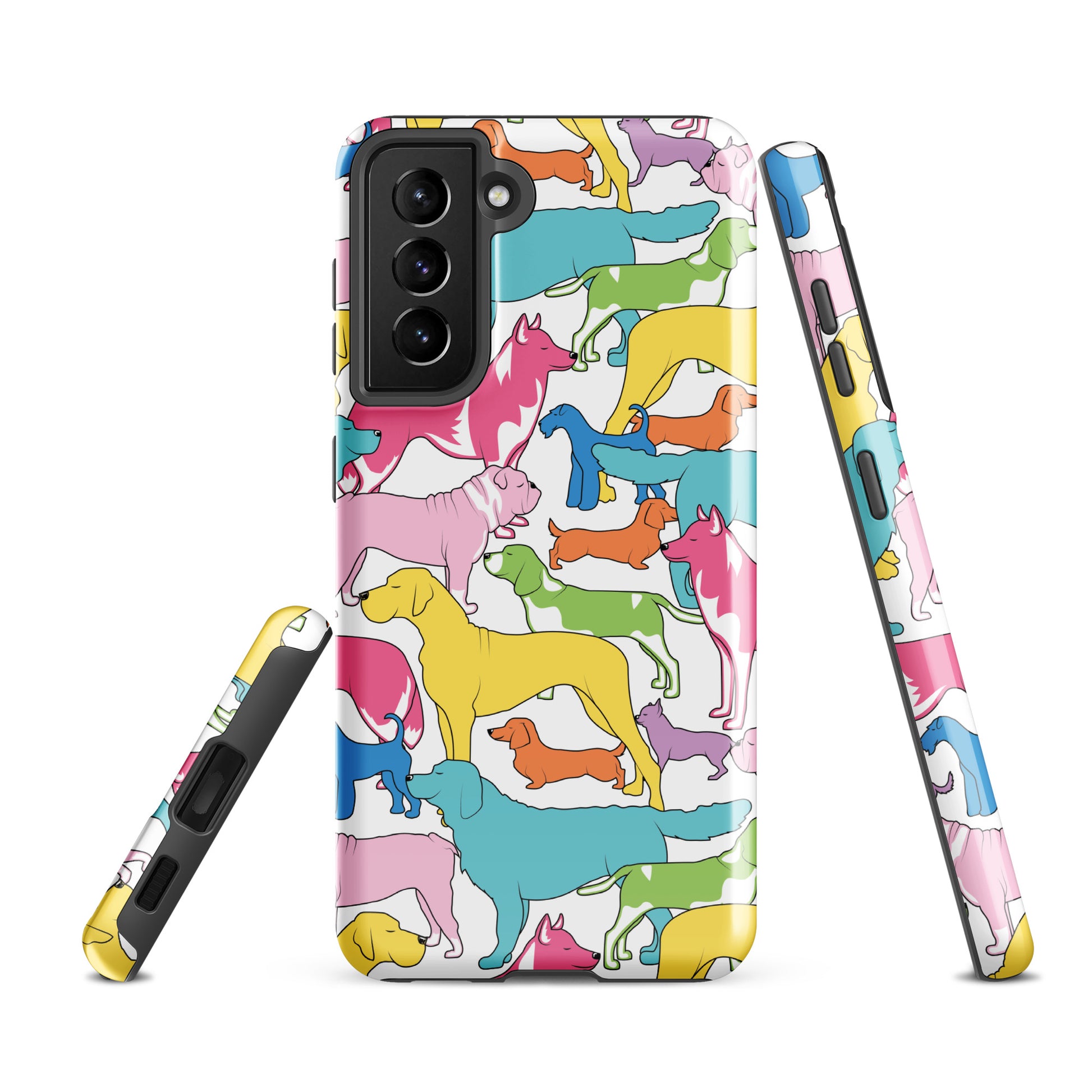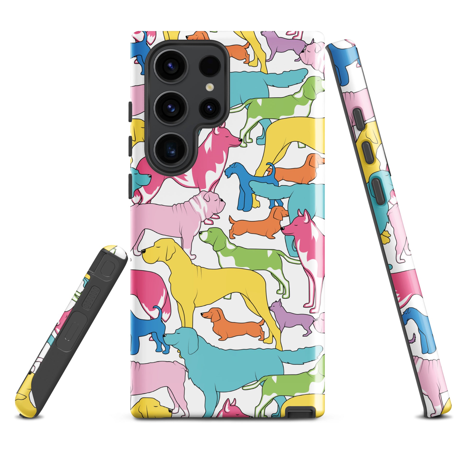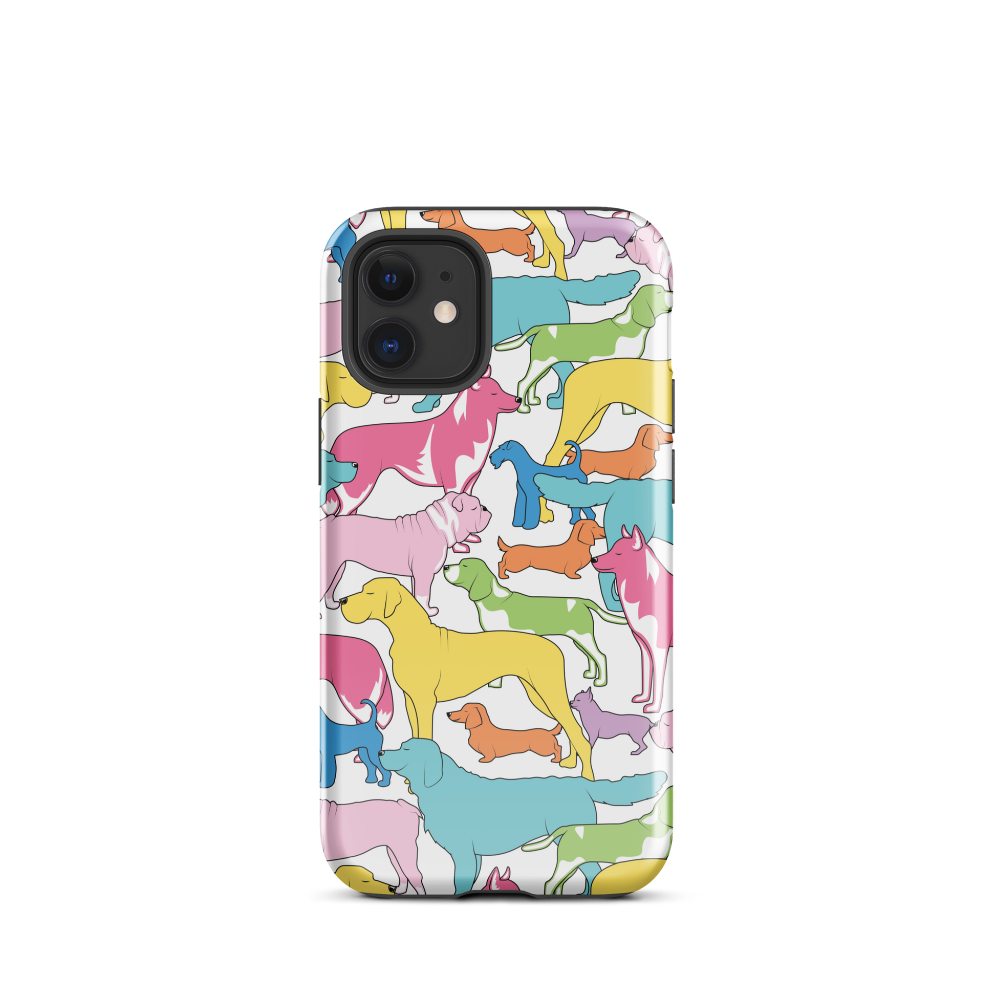 Design features a rainbow of dogs in a variety of breeds, including Great Danes, huskies, golden retrievers, Dachshunds, beagles, chihuahuas, terriers, and bulldogs. Perfect for dog lovers and pet parents!