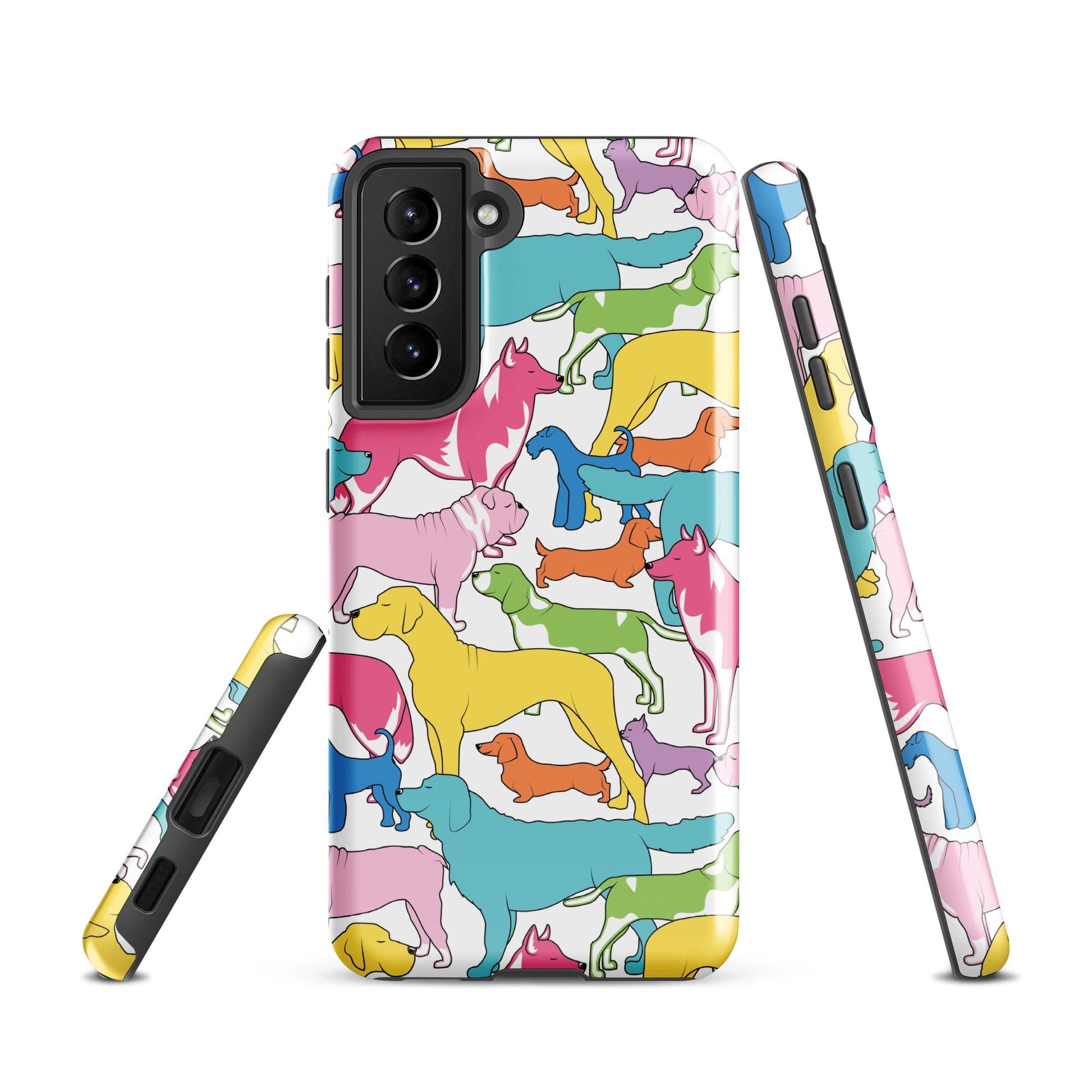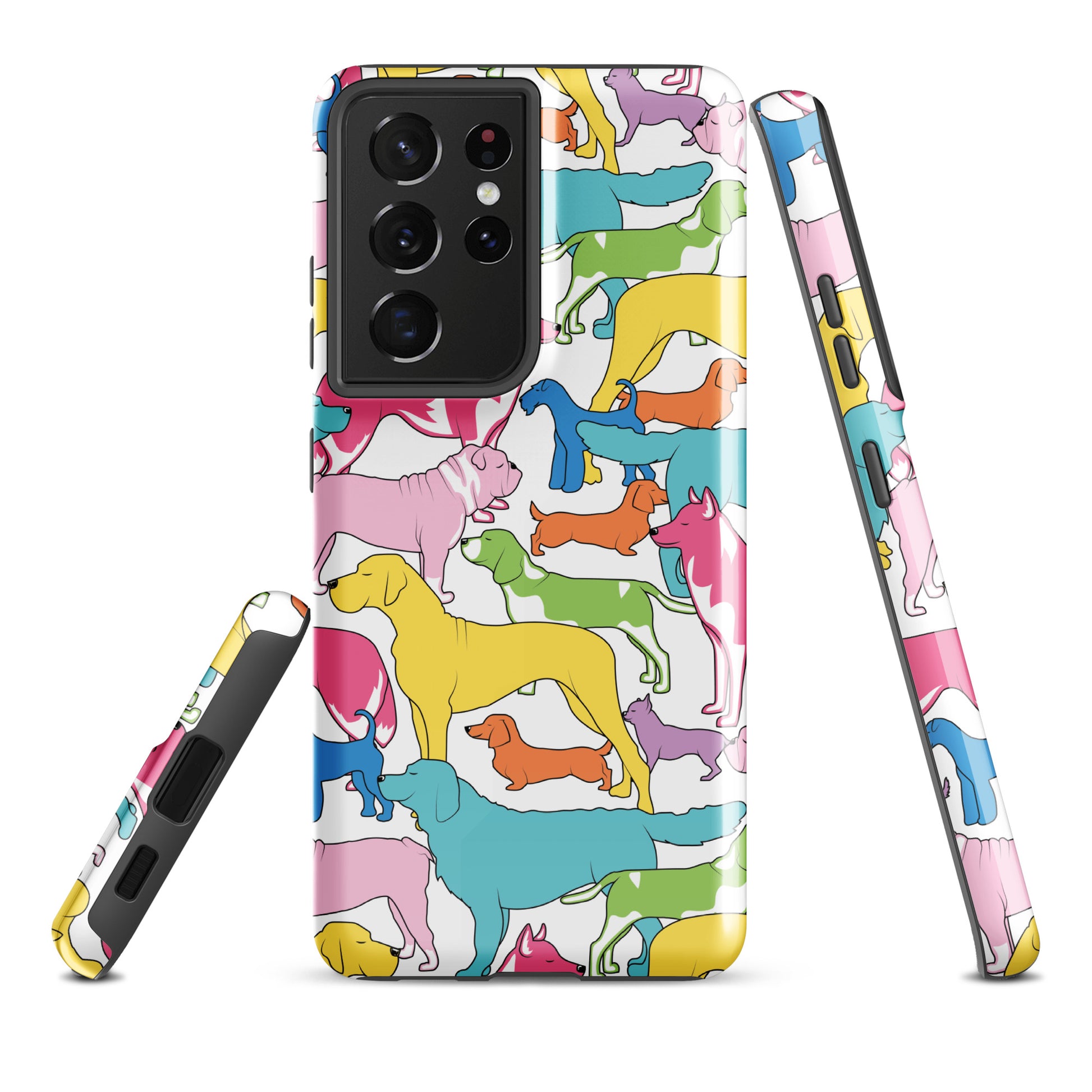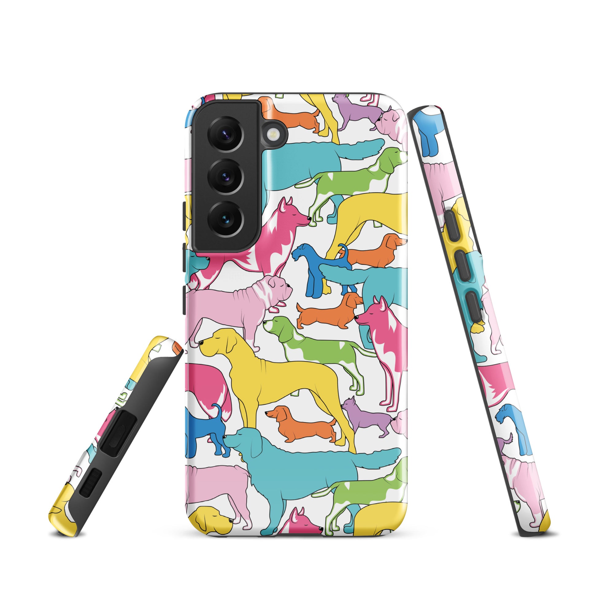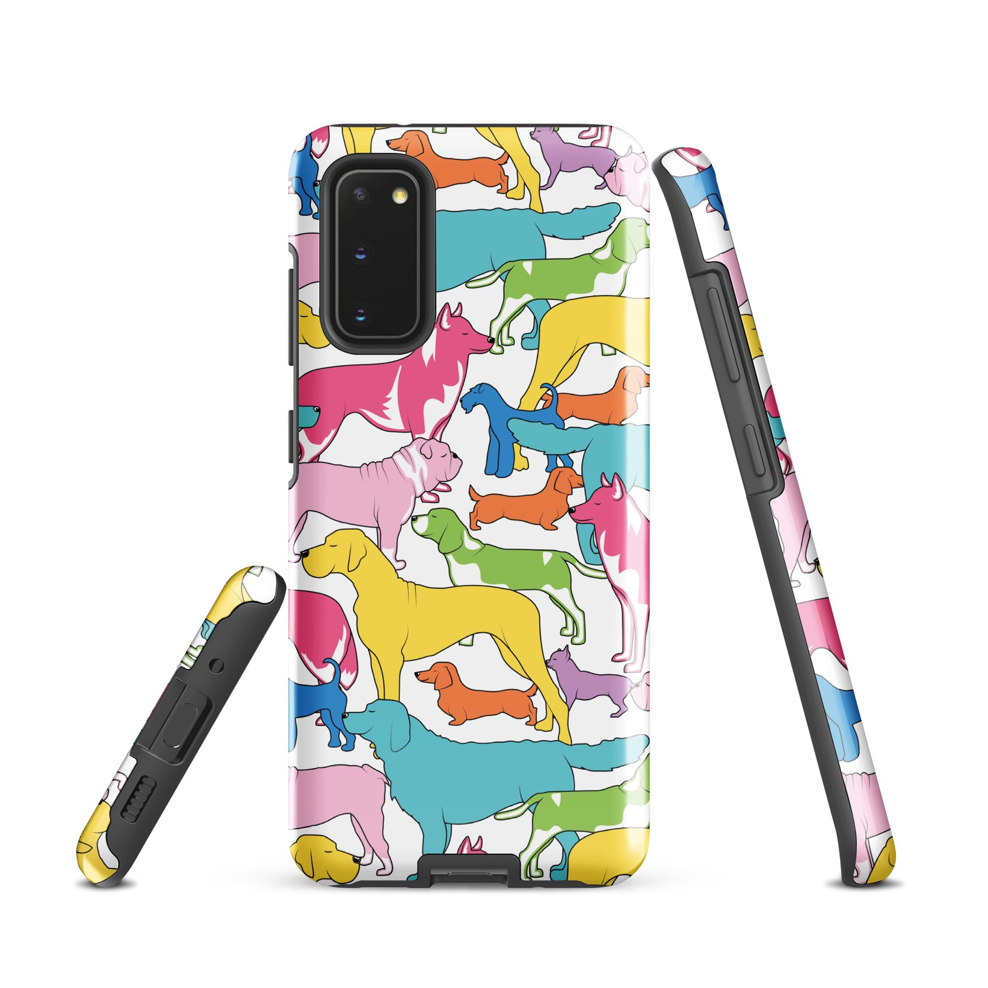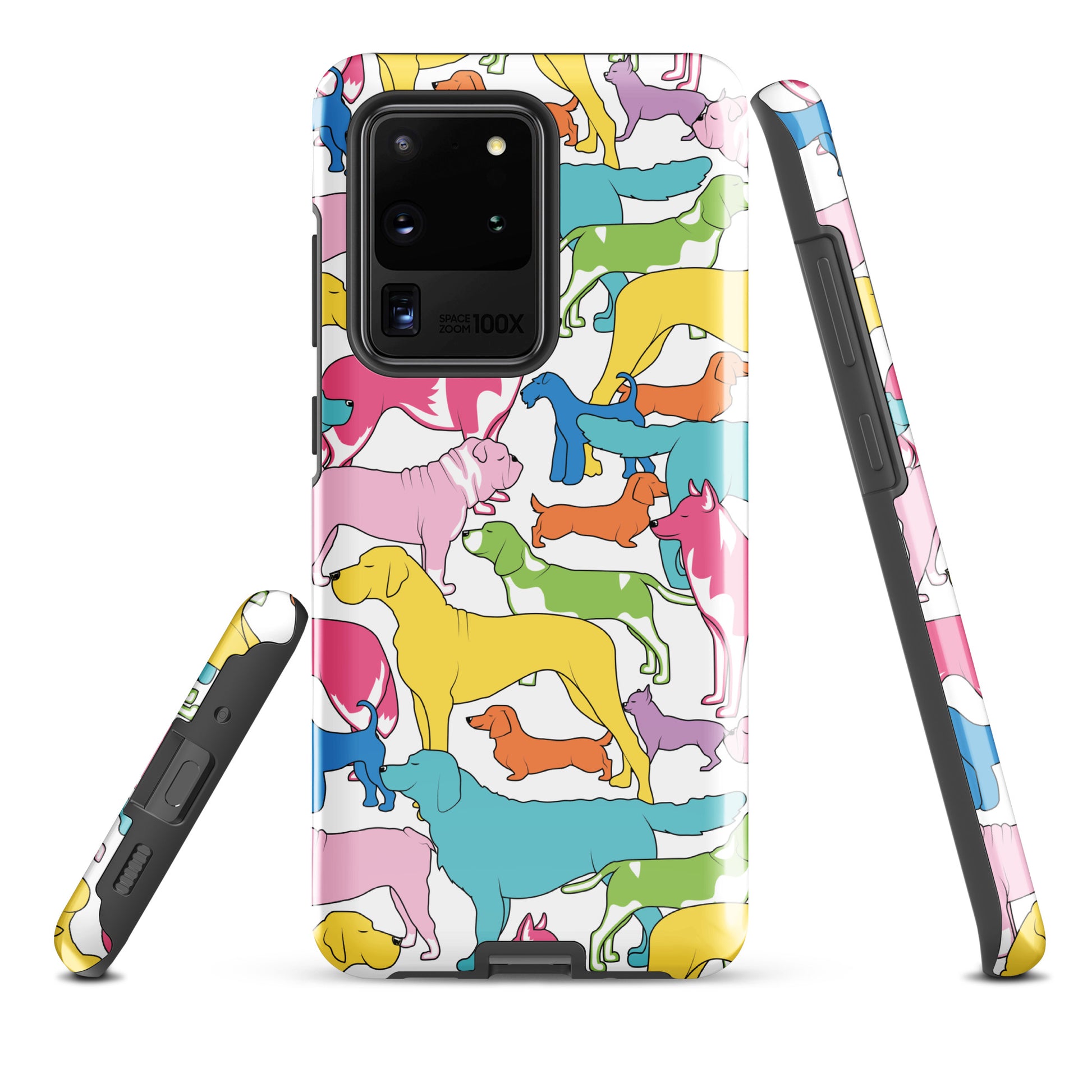 Design features a rainbow of dogs in a variety of breeds, including Great Danes, huskies, golden retrievers, Dachshunds, beagles, chihuahuas, terriers, and bulldogs. Perfect for dog lovers and pet parents!