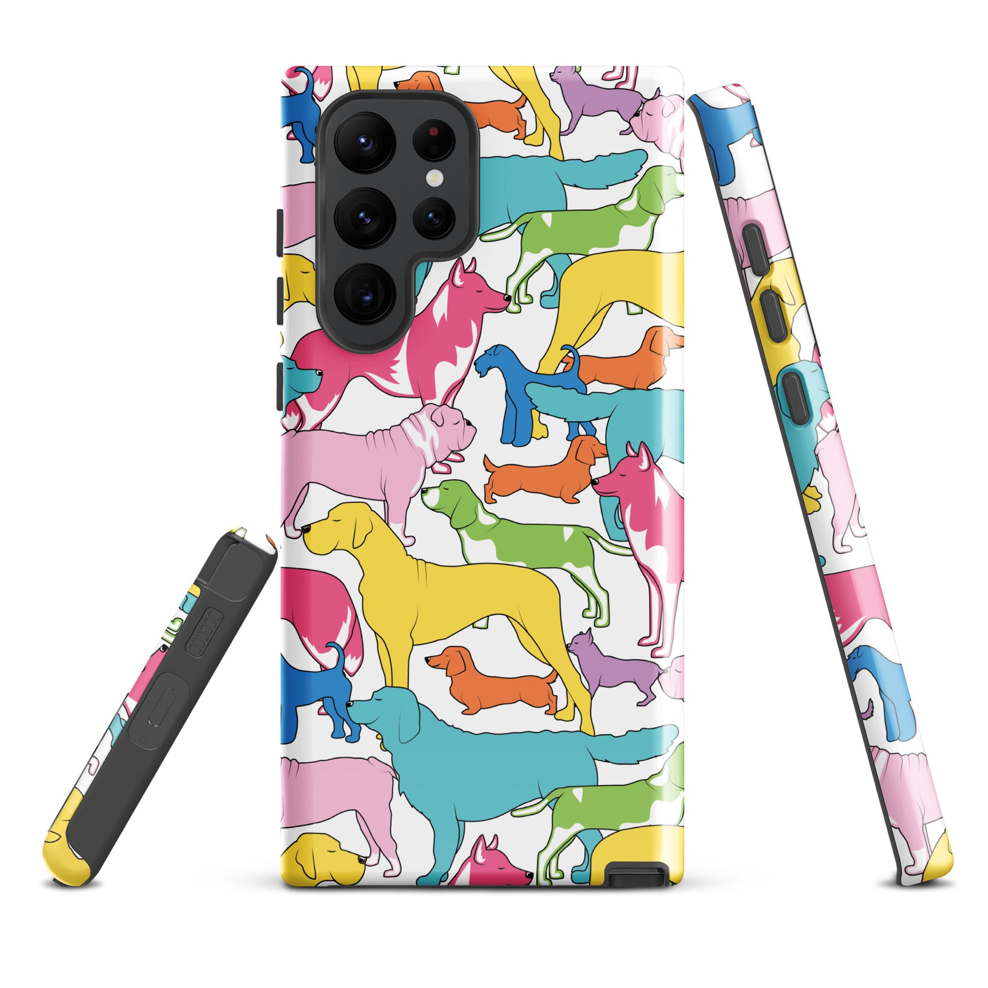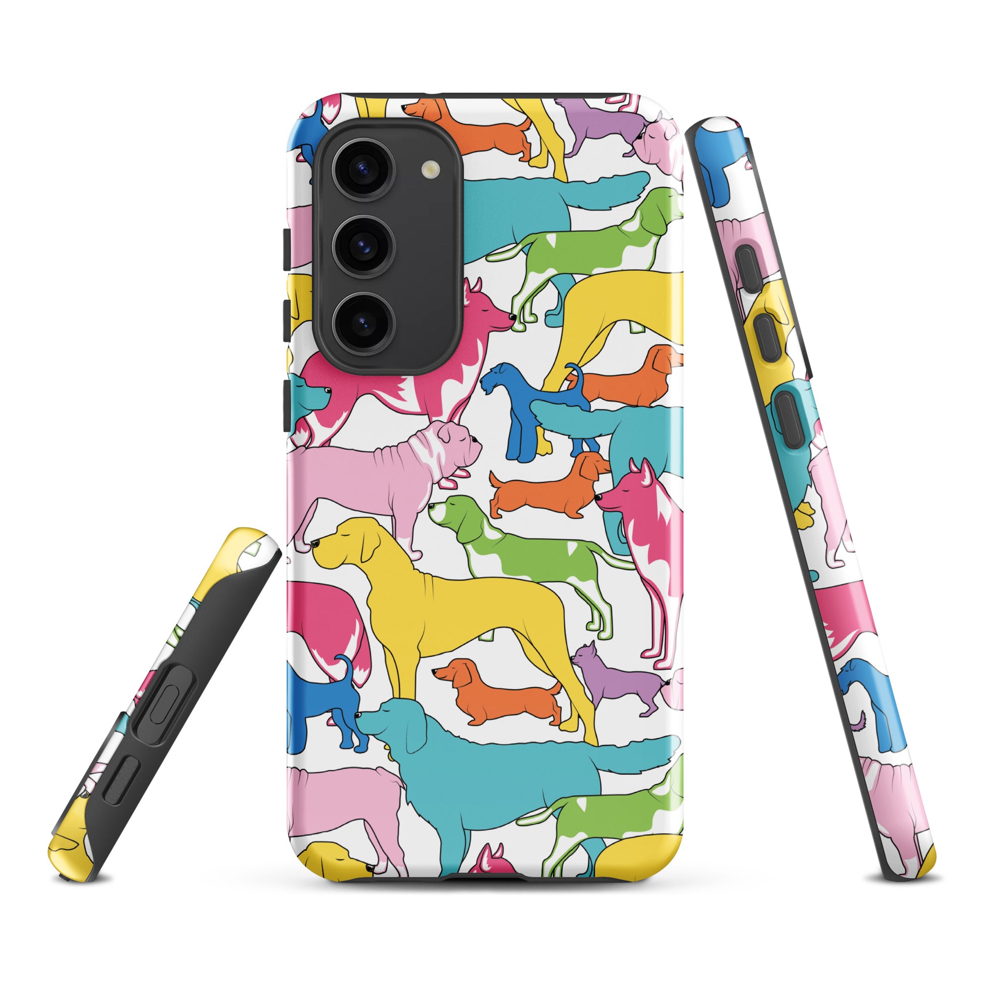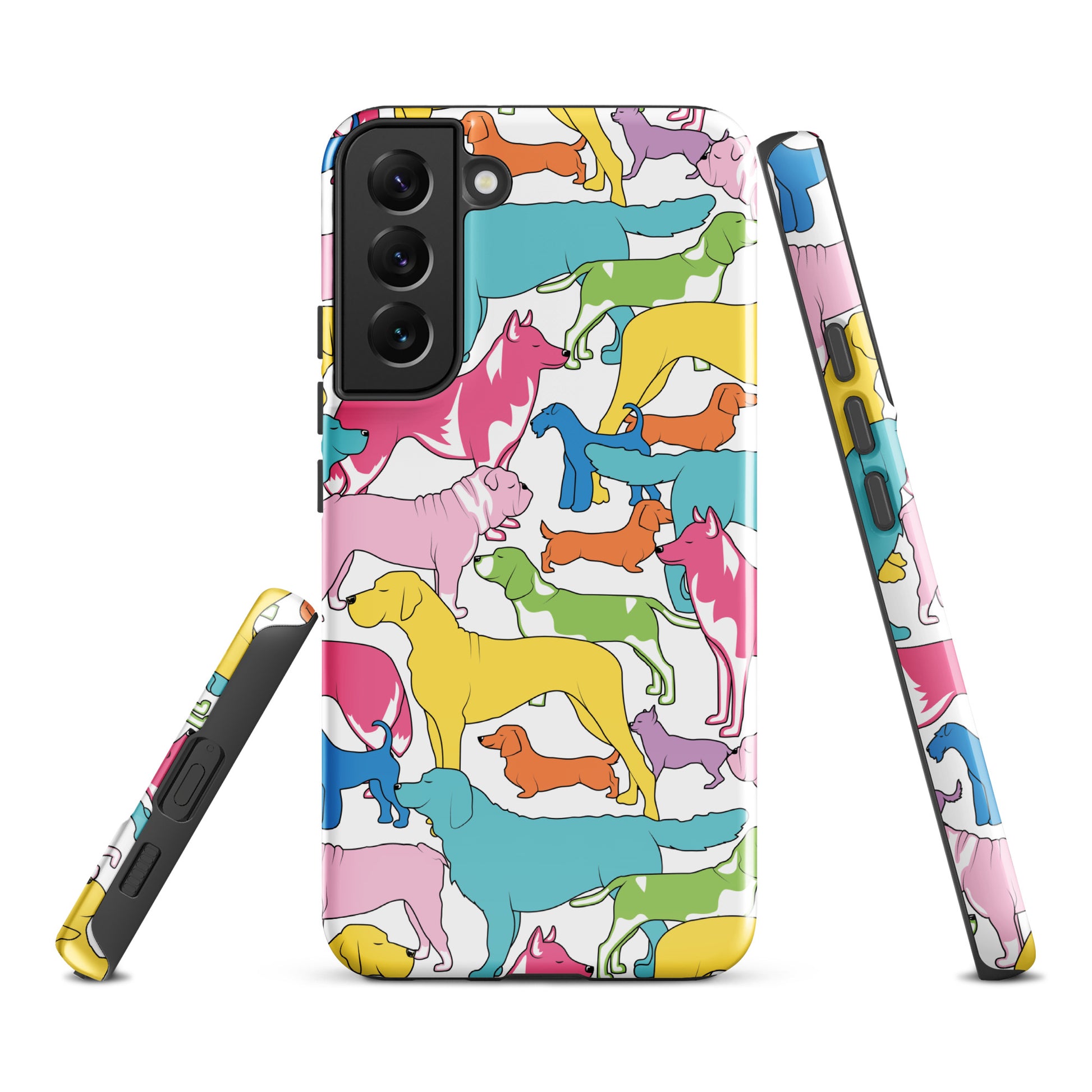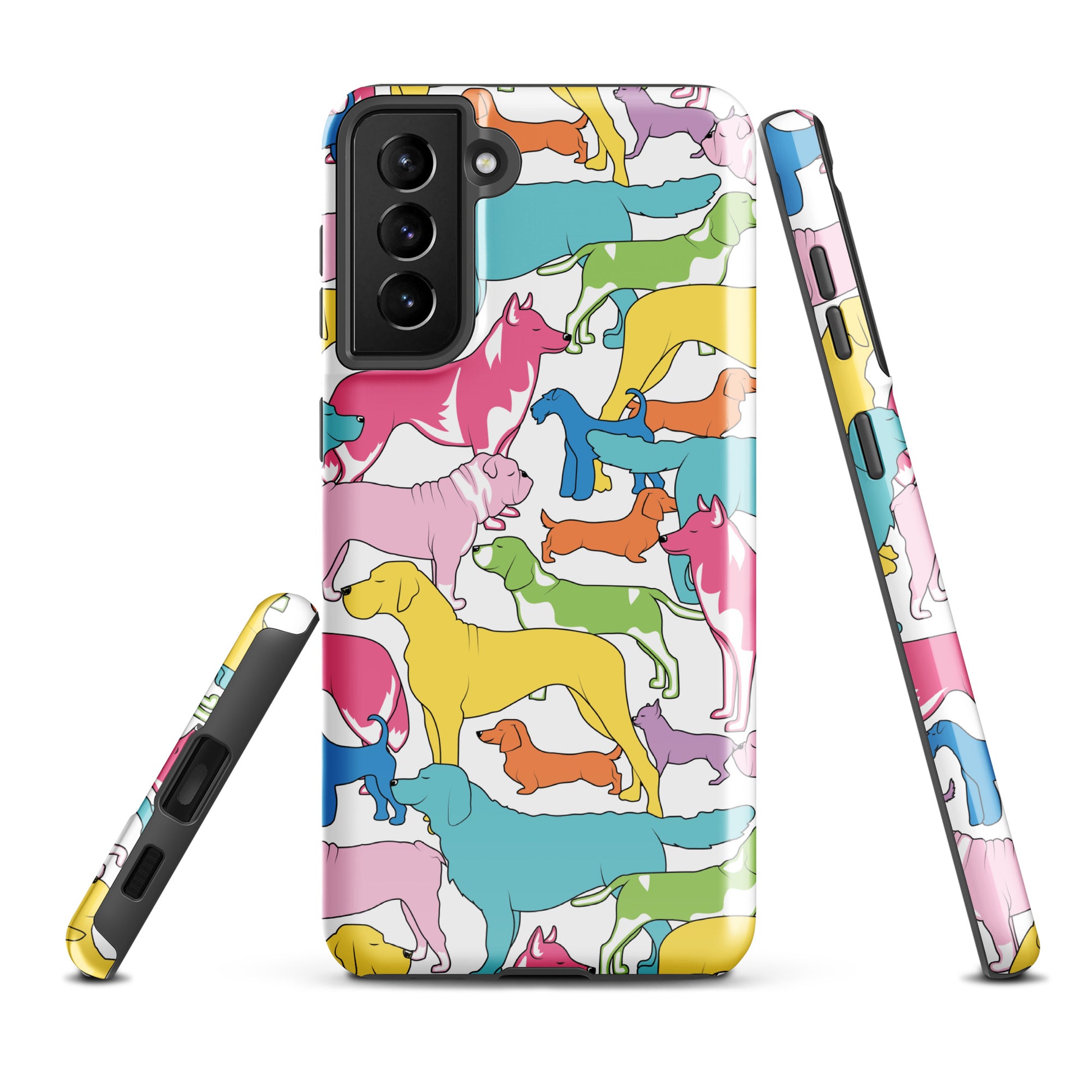 Design features a rainbow of dogs in a variety of breeds, including Great Danes, huskies, golden retrievers, Dachshunds, beagles, chihuahuas, terriers, and bulldogs. Perfect for dog lovers and pet parents!
