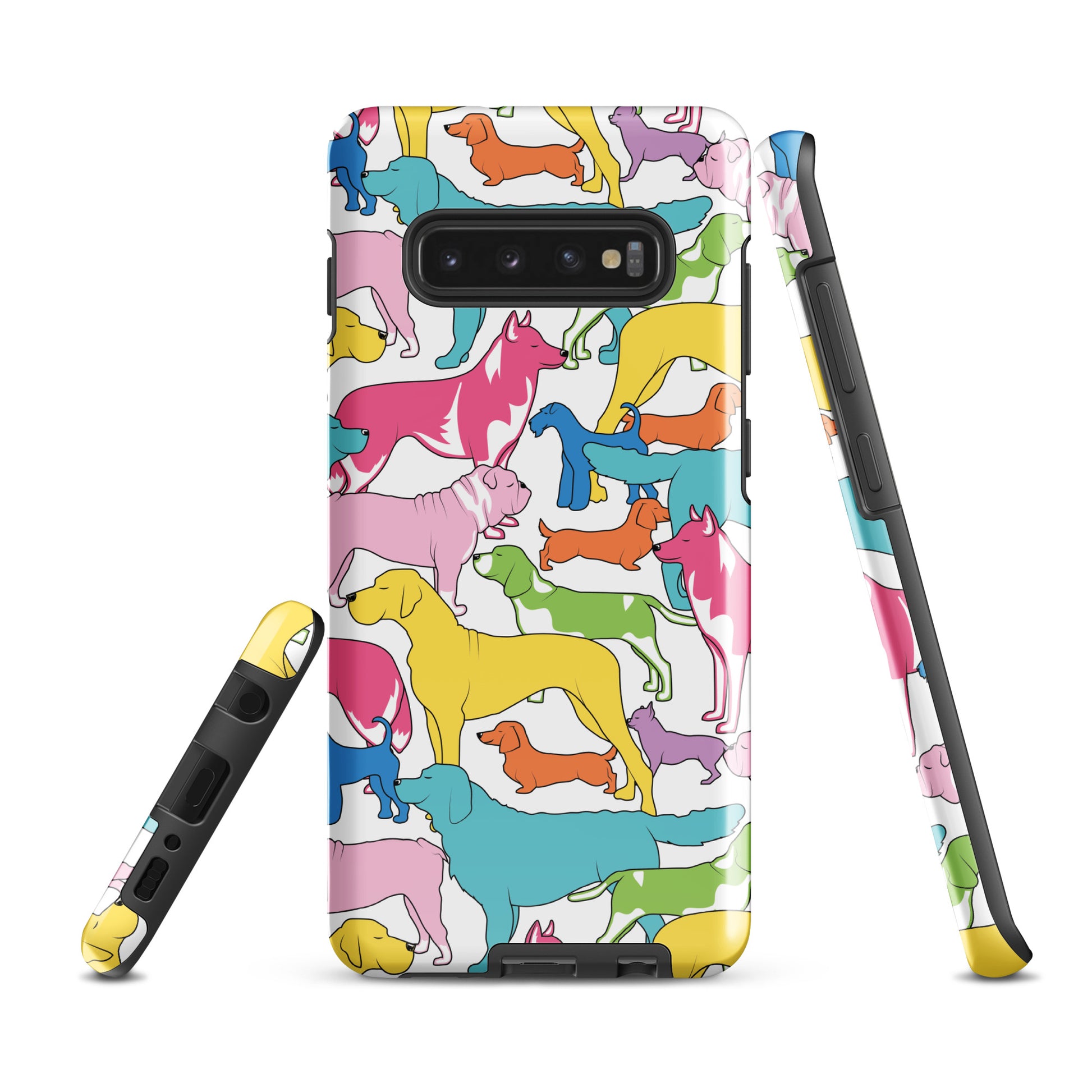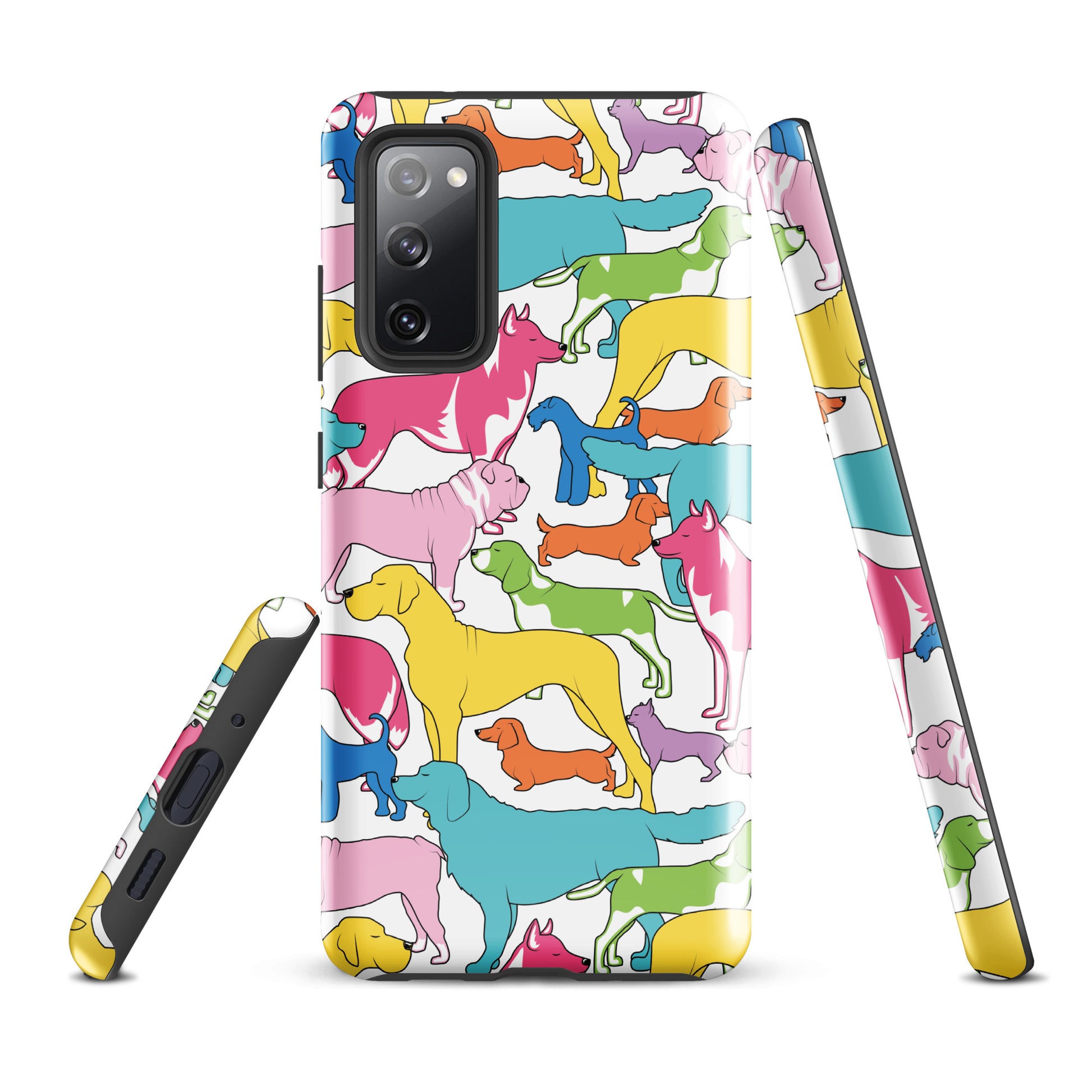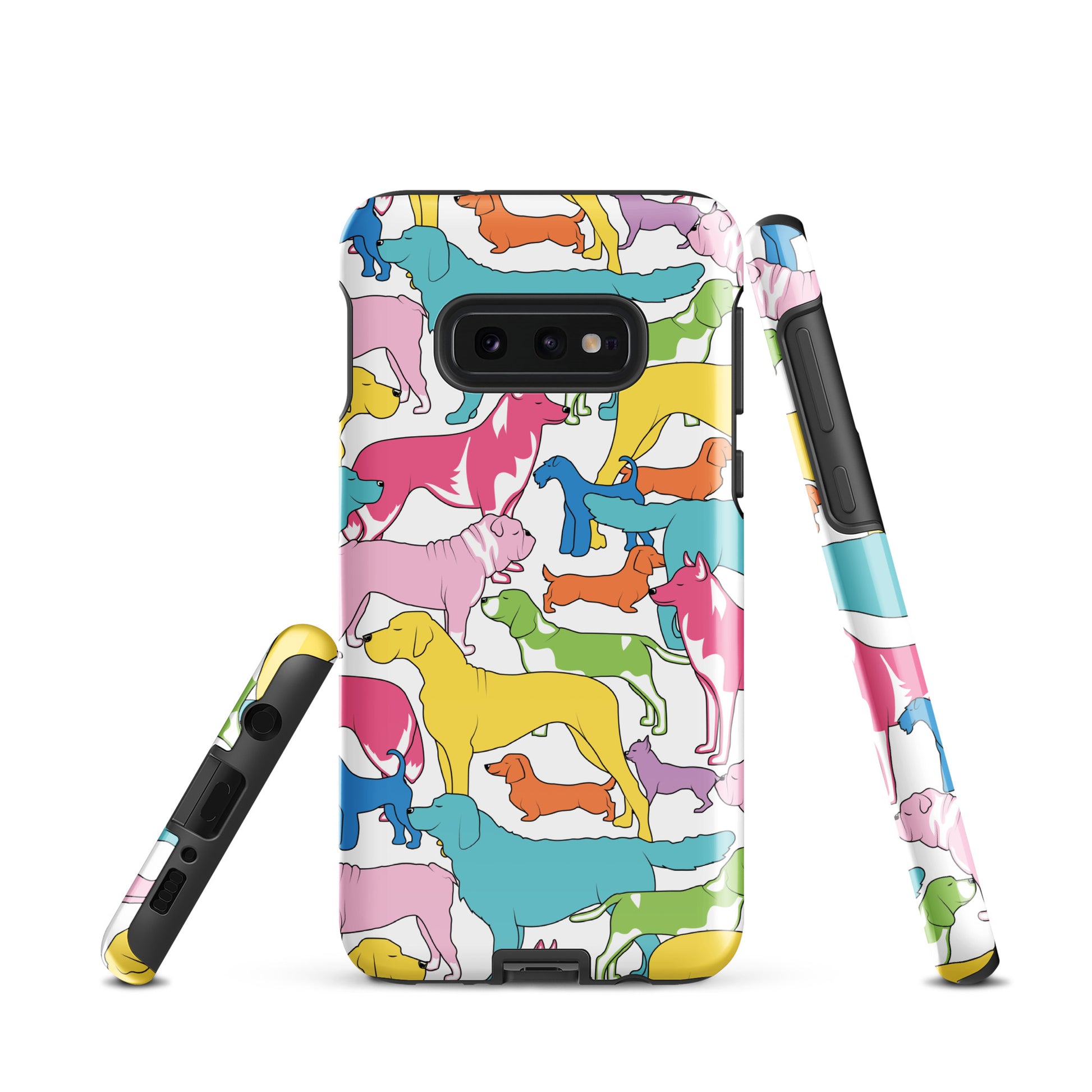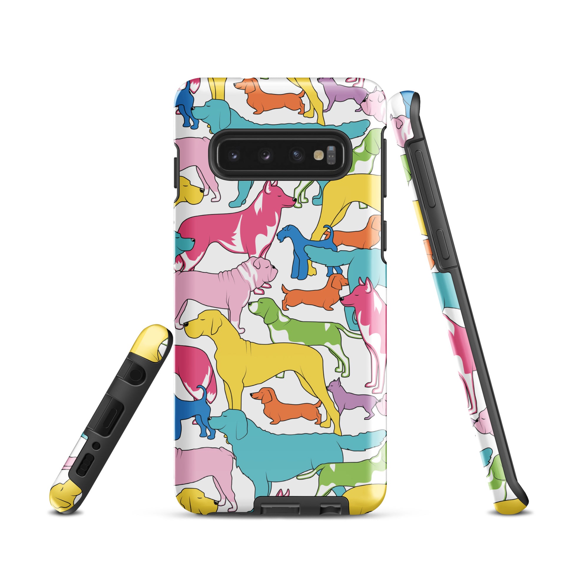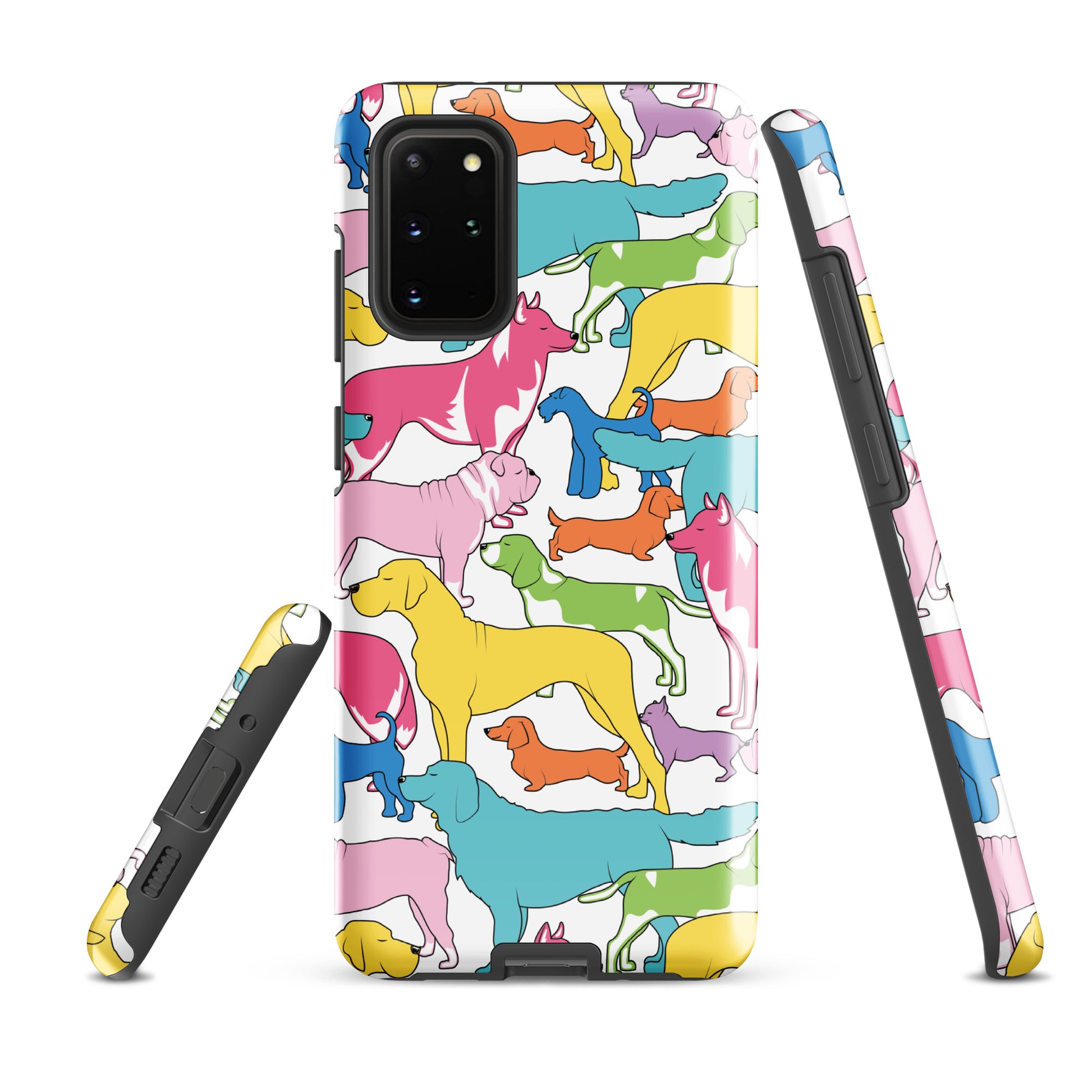 Design features a rainbow of dogs in a variety of breeds, including Great Danes, huskies, golden retrievers, Dachshunds, beagles, chihuahuas, terriers, and bulldogs. Perfect for dog lovers and pet parents!