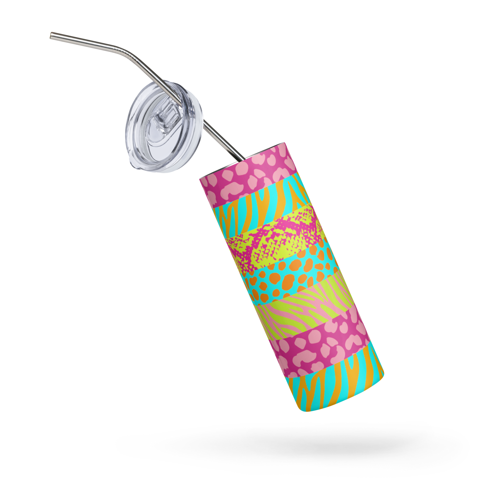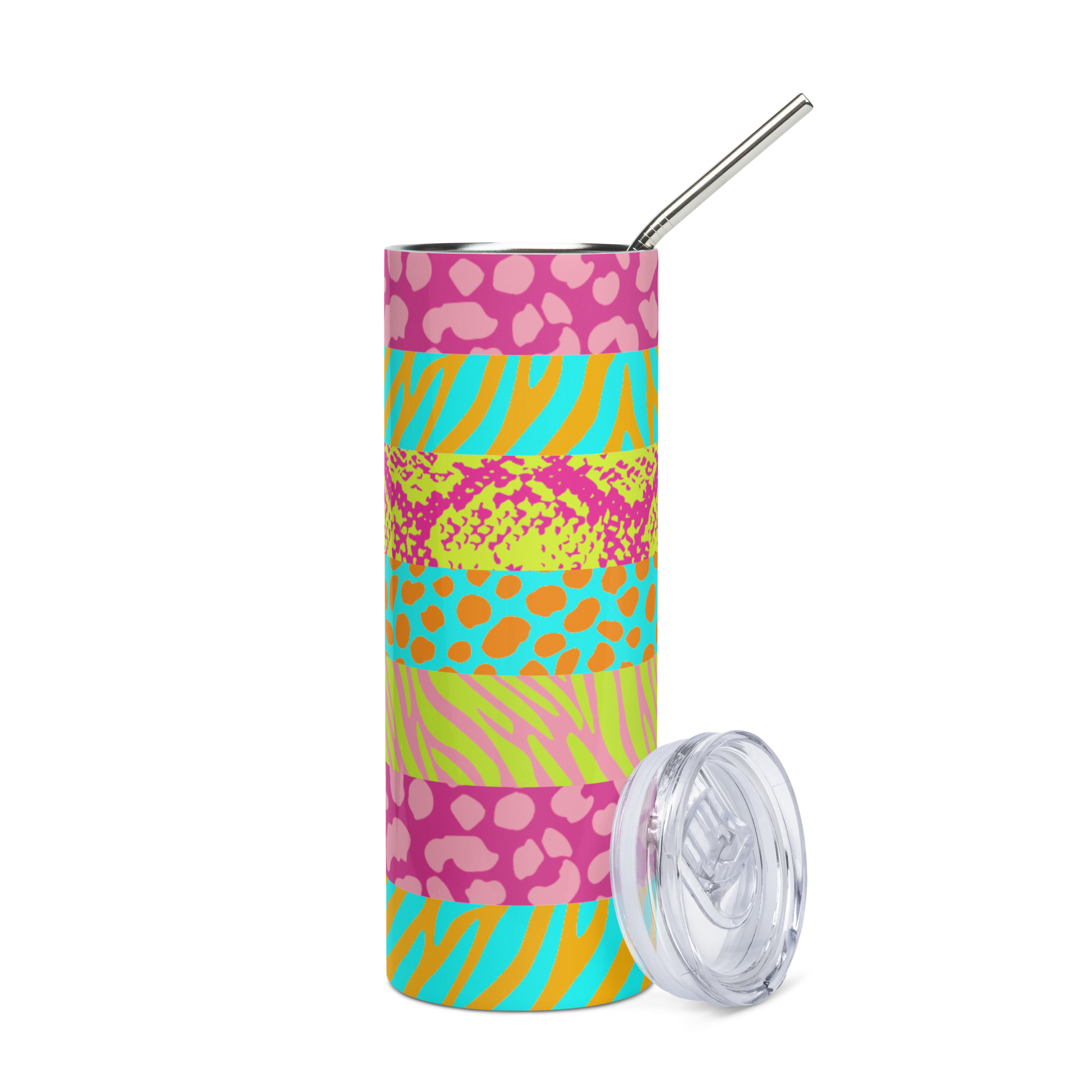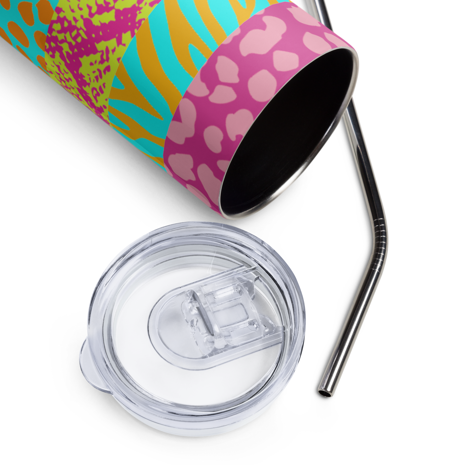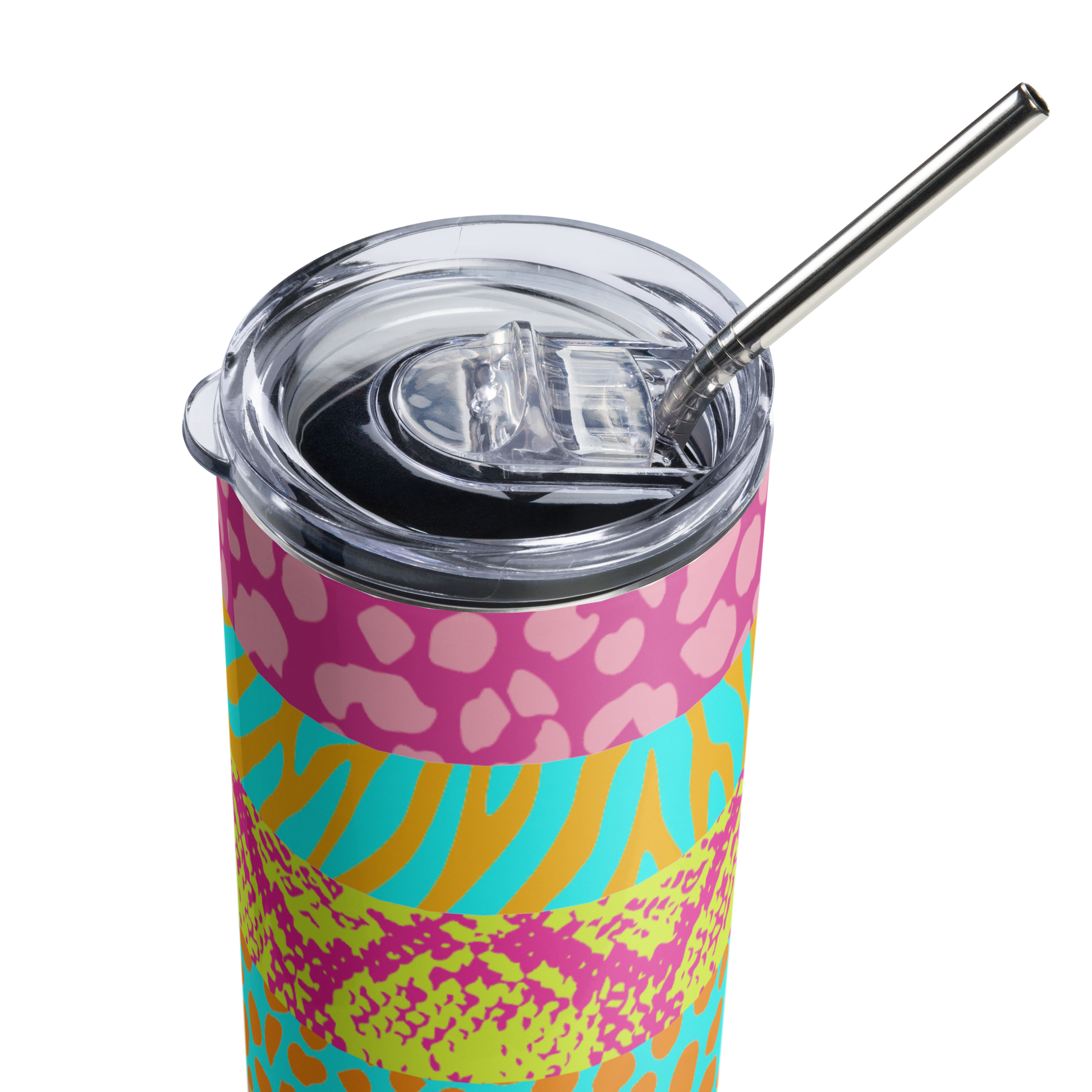 Perfect for hot or cold drinks any time of day, this stainless steel tumbler is going to be your new go-to. It's made of high grade stainless steel with a layer of colorful varnish, and comes with straw and lid. Hello, emotional support water bottle!